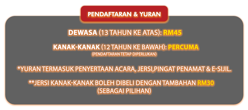 Jersey eksklusif & pingat penamat untuk semua peserta berdaftar